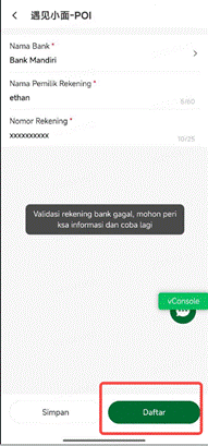 akun penerima pembayaran untuk melakukan penarikan dana hasil verifikasi