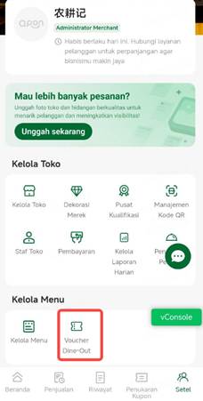 Merchant Buka platform merchant, di halaman utama "Manajemen Bisnis"