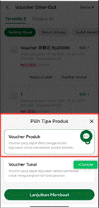 Pilih jenis produk dan jenis aktivitas grup pembelian terlebih